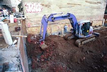 In September of 2001, excavation at the corner of Clay and Battery Streets began under the supervision of the staff of Archeo-Tec.
