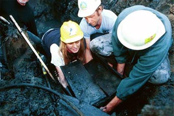 Just outside the ship was a densely packed layer of artifacts deposited at the time of the 1851 fire. These artifacts included glass trade beads, penny pipes, bolts of cloth, wheat seeds, two different