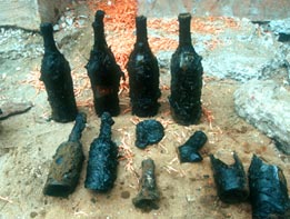 kinds of beans and various whole bottles (some with contents still intact, such as were found in this straw packed crate).